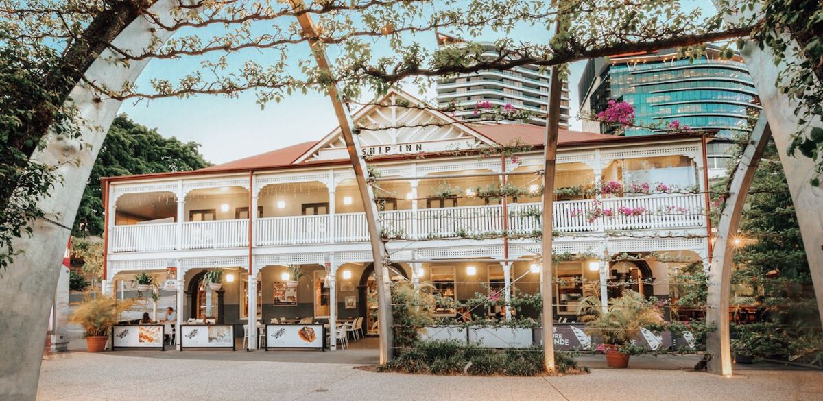 En af South Brisbanes ikoniske pubber, The Plough Inn, er en destination i sig selv, med gammeldags charme og en autentisk atmosfære. Her kan man slappe af i ølhaven og opleve den udendørs atmosfære fra det nybyggede dæk. Udforsk ovenpå i Heritage Room og nyd den fantastiske udsigt over Brisbane fra den forreste veranda. Sæt dig ned til et klassisk pubmåltid fra bøfhuset, inklusiv husets specialitet: speciallavet barbecue ribs.